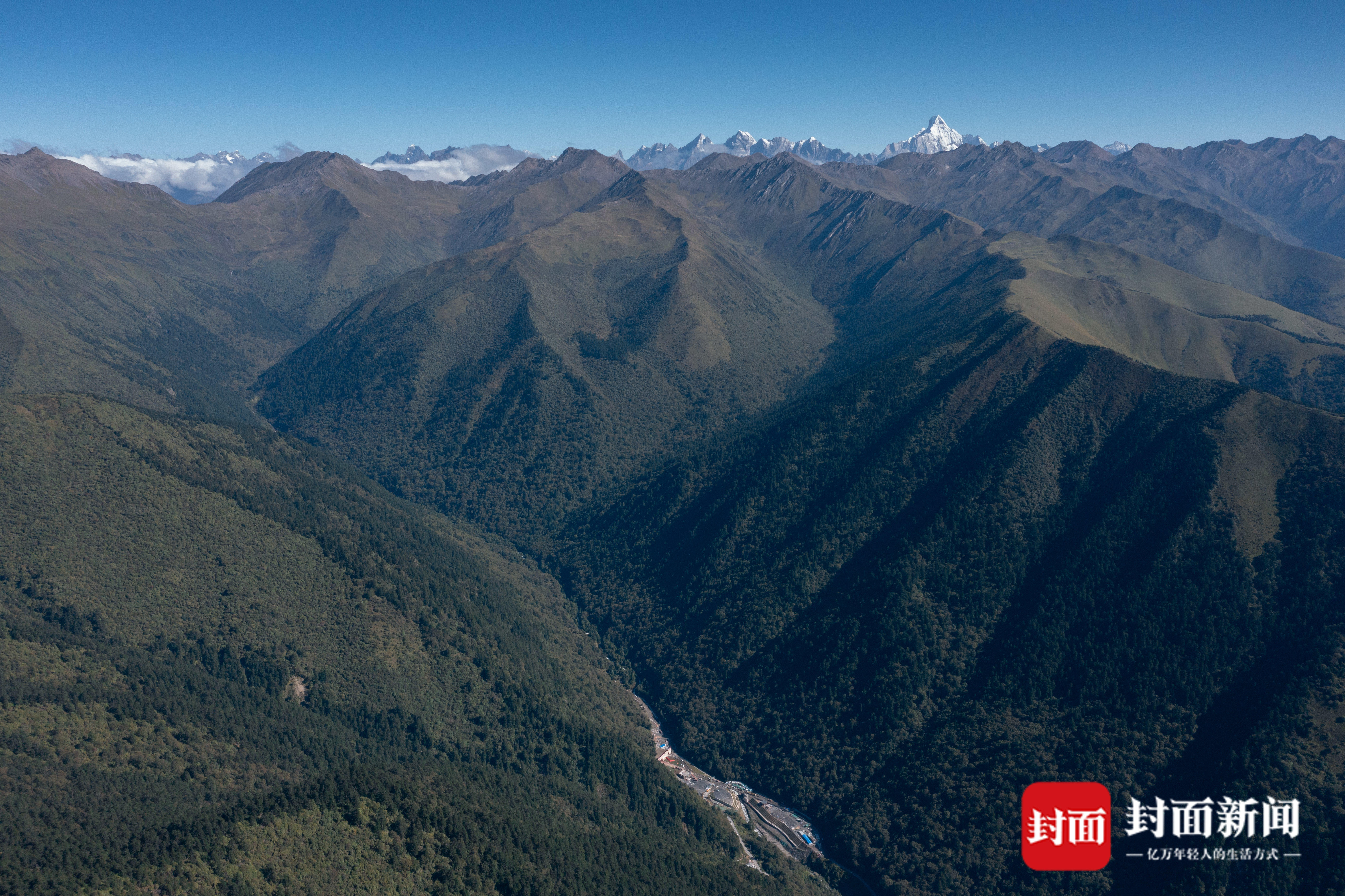 2025年9月24日,远眺夹金山隧道宝兴方向入口,远处是四姑娘山幺妹峰。摄影:杨涛