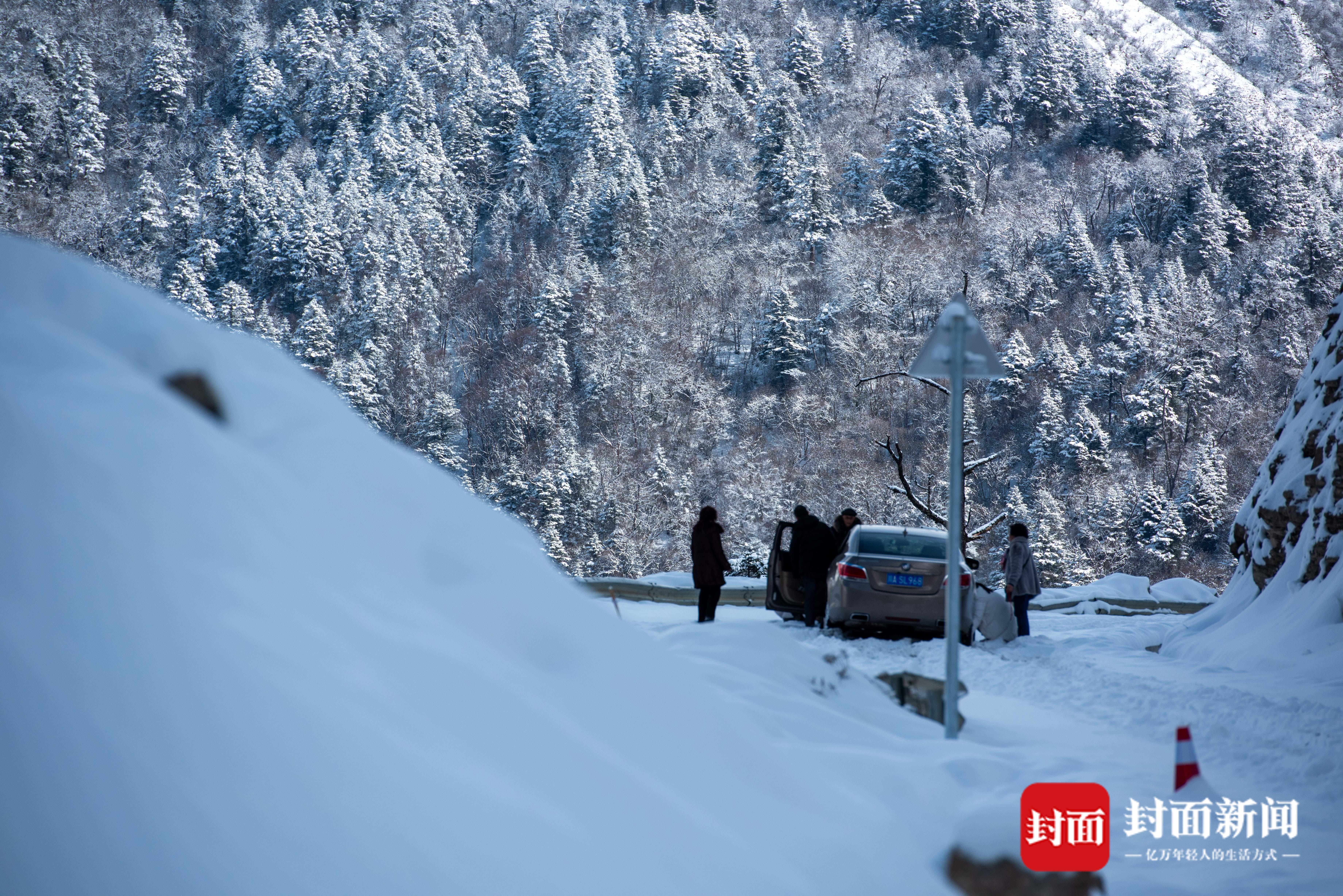 2020年1月25日,夹金山公路上,一辆被困在冰雪路面上的私家车。摄影:杨涛